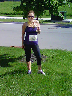 I had lost about 20 lbs and training was going well.....I had rested my knee and was feeling good- I was very excited to run. I missed the registration and it sold out! I was so upset and almost didn't get to run.....See that story HERE....I went to use the porta potty 30 minutes before the race the line was so long I was actually in the porta potty when the start gun went! I lost my dad but was able to catch him (and beat him in the end!!!!) around km 14 or 15....But it all worked out. I felt great going into the race and during. Too bad I held back a bit, as I was waiting to hit that wall that had happened in the last 2 races. It never came!